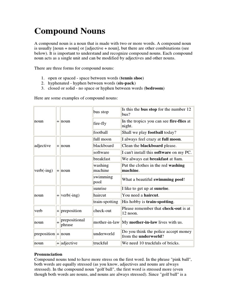 Compound Nouns Machine PDF Noun Adjective